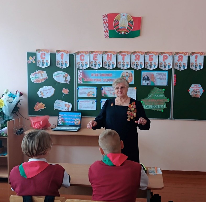 Представители Совета ветеранов Октябрьского района г. Гродно приняли участие в торжественных линейках, посвящённых началу нового 2025/2026 учебного года и в первом уроке на тему: «Эстафета поколений: сохраняя прошлое, создаём будущее».
