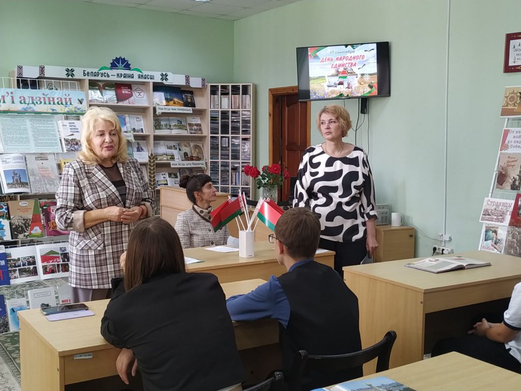 В Свислочи в районной библиотеке прошел урок с учащимися 8-х классов СШ № 2 им. Н.П.Массонова «Сила в единстве», посвященный Дню народного единства, с участием председателя Свислочской районной ветеранской организации.