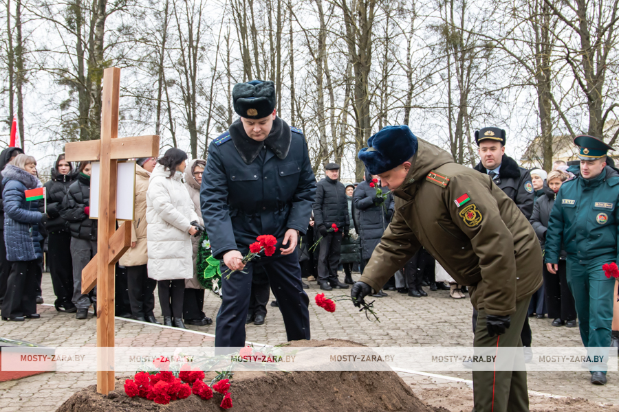 На церемонии перезахоронения останков советских воинов присутствовали председатель районного Совета депутатов Валерий Табала, заместитель председателя райисполкома Марина Давыдик, прокурор Мостовского района Игорь Якимович, военный комиссар Сергей Ларченко, а также председатели сельисполкомов района, представители районного совета ветеранов, организаций и учреждений Мостовщины.