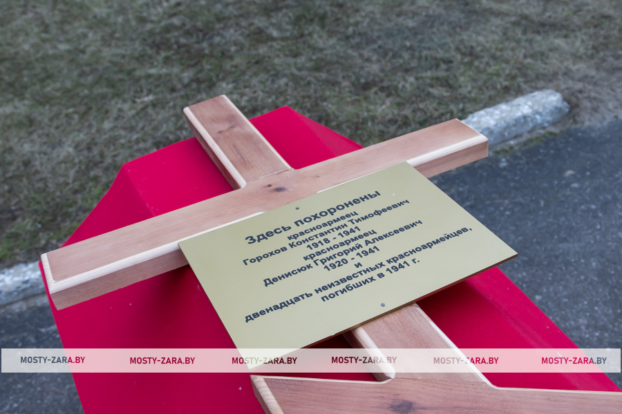 В завершение церемонии захоронения настоятель храма «Всех скорбящих Радость г. Мосты» протоиерей Владимир Саверченко провёл чин освящения воинского захоронения, а салютный взвод 6-й отдельной механизированной бригады сделал пять залпов в честь подвига нашедших вечный покой советских солдат.