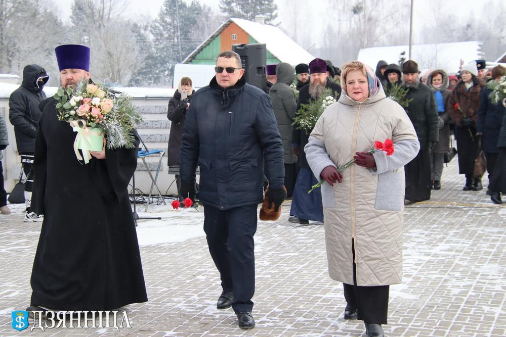 Под мерные удары метронома участники митинга склонили головы. В этой тишине была вся скорбь о погибших земляках. Под печальные звуки музыки и холодного ветра к подножию обелиска легли цветы и венки. Алые гвоздики и еловые ветви на белом снегу у холодного гранита – символ жизни, проросшей сквозь пепел, и обещания, что подвиг и страдание не будут забыты.