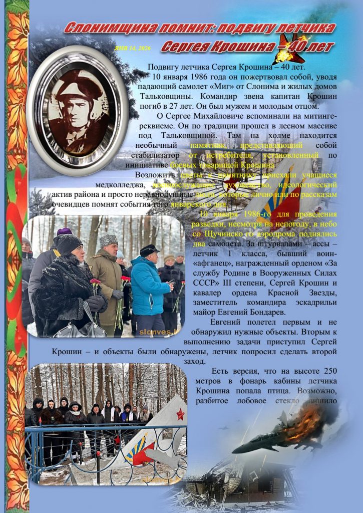 Слонимчане помнят подвиг летчика С.М. Крошина